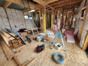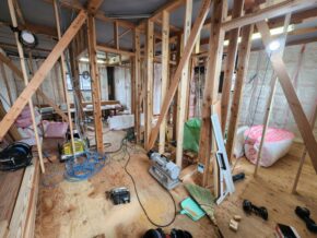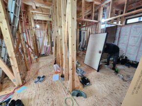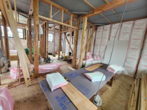 状況としましては、大工さんによって壁断熱材が施工されている真っ最中でした!